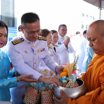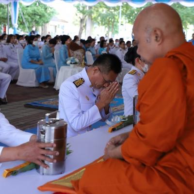 ในพิธีทำบุญตักบาตรถวายพระราชกุศล พระสงฆ์ จำนวน 10 รูป ประกอบพิธีเจริญพระพุทธมนต์ พระสงฆ์เจริญพระพุทธมนต์ // จากนั้น ผู้ว่าราชการจังหวัดสงขลาและคู่สมรส พร้อมผู้ร่วมพิธี ร่วมในพิธีทำบุญตักบาตร โดยมีพระสงฆ์และสามเณร เดินรับบิณฑบาต