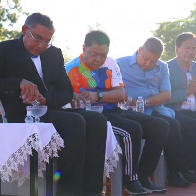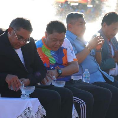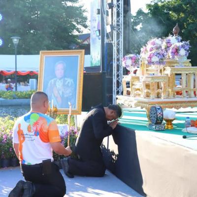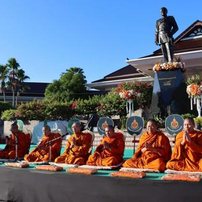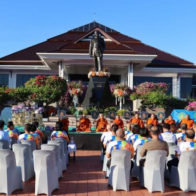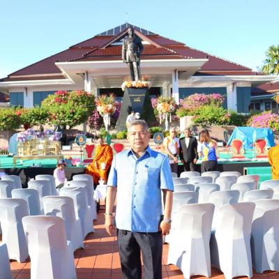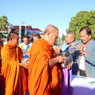 นายประสิทธิ์ ช่วยชูสกูล เลขานุการนายกองค์การบริหารส่วนจังหวัดสงขลา และนายปรีชัย มาละวรรณโณ ที่ปรึกษานายกองค์การบริหารส่วนจังหวัดสงขลา ร่วมพิธีตักบาตรพระสงฆ์ 103 รูป ซึ่งเป็นหนึ่งในกิจกรรม "เพลินใจในสวนป๋า" เพื่อร่วมรำลึกถึง พลเอก เปรม ติณสูลานนท์