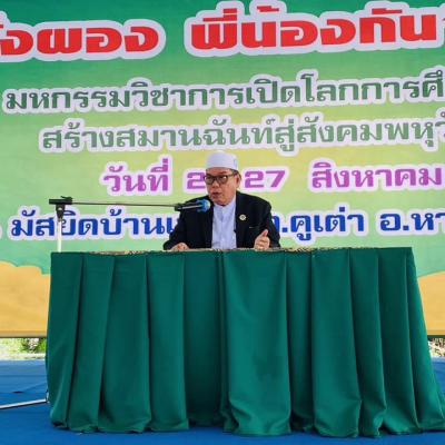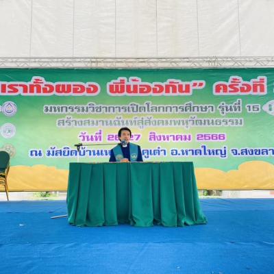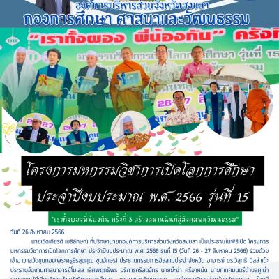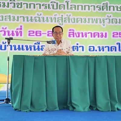 นายเชิดเกียรติ เมธีลักษณ์ ที่ปรึกษานายกองค์การบริหารส่วนจังหวัดสงขลา เป็นประธานในพิธีเปิด โครงการมหกรรมวิชาการเปิดโลกการศึกษา ประจำปีงบประมาณ พ.ศ. 2566 รุ่นที่ 15 (วันที่ 26 - 27 สิงหาคม 2566) ร่วมด้วยเจ้าอาวาสวัดขุนทอง(พระครูธีรสุตคุณ ขุนอักษร) ประธานกรรมการอิสลามประจำจังหวัด อาจารย์ ดร.วิสุทธิ์ บิลล่าเต๊ะ ประธานจัดงานศาสนาจารย์โมเสส เลิศพฤทธิพร อธิการคริสตจักร นายย๊ะย่า ศรีอาหมัด นายกเทศมนตรีตำบลคูเต่า คณะแขกผู้มีเกียรติและเจ้าหน้าที่กองการศึกษา ศาสนาและวัฒนธรรม องค์การบริหารส่วนจังหวัดสงขลา โดยมีวัตถุประสงค์เพื่อให้เกิดการเรียนรู้และเข้าใจการเป็นผู้นำ สร้างสมานฉันท์สู่สังคมพหุวัฒนธรรม มีทัศนคติที่ดี สามารถทำงานร่วมกันอย่างมีความสุข โดยมุ่งเน้นจัดอบรม ให้ความรู้เกี่ยวกับจิตวิทยา ความเป็นผู้นำ การสร้างความเชี่ยวชาญไปประยุกต์ใช้ในชีวิตประจำวันอย่างมีความสุข ณ มัสยิดบ้านเหนือ อำเภอหาดใหญ่ จังหวัดสงขลา