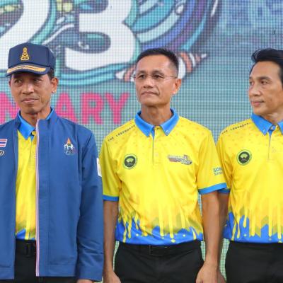 นายไพเจน มากสุวรรรณ์ นายกองค์การบริหารส่วนจังหวัดสงขลา นายสุรสิทธิ์ ศรีอินทร์ รองนายกองค์การบริหารส่วนจังหวัดสงขลา ร่วมเป็นเกียรติในพิธีแถลงข่าว และพิธีเปิด โครงการแข่งขันกีฬาเดิน - วิ่ง ประจำปีงบประมาณ พ.ศ.2566 (กิจกรรมแข่งขันกีฬาเดิน - วิ่งสงขลามาราธอน) SONGKHLA INTERNATIONAL MARATHON 2023 พร้อมด้วยแขกผู้มีเกียรติ คณะกรรมการจัดงาน และนักกีฬา ร่วมเป็นเกียรติในพิธีเปิด