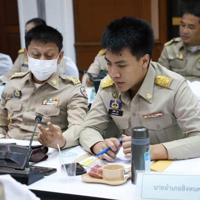 พร้อมด้วย หัวหน้าส่วนราชการจังหวัด หัวหน้าหน่วยงานรัฐวิสาหกิจ และภาคเอกชน นายอำเภอ และเจ้าหน้าที่ที่เกี่ยวข้องเข้าร่วมในการประชุมฯ อย่างพร้อมเพรียง