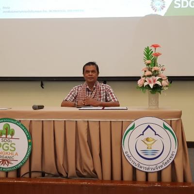 นายกองค์การบริหารส่วนจังหวัดสงขลา มอบหมายให้ นายธัชธาวินท์ สะรุโณ ที่ปรึกษาพิเศษนายกองค์การบริหารส่วนจังหวัดสงขลา ด้านการส่งเสริมและสนันสนุนการเกษตร เป็นประธานในพิธีเปิด กิจกรรมการรับรองมาตรฐานเกษตรินทรีย์แบบมีส่วนร่วม SDGsPGS โครงการรัตภูมิเมืองเกษตรอินทรีย์เมืองอัจฉริยะพื้นฐานเกษตรอินทรีย์