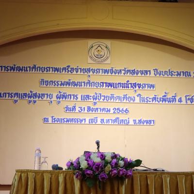 โครงการพัฒนาศักยภาพเครือข่ายสุขภาพจังหวัดสงขลา ปี 2566 (กิจกรรมพัฒนาศักยภาพ แกนนำสุขภาพในการดูแลผู้สูงอายุ ผู้พิการ และผู้ป่วยติดเตียง ในระดับพื้นที่ 4 โซน)