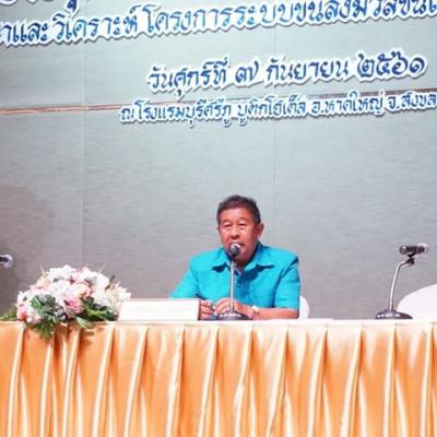 วันศุกร์ที่ 7 กันยายน 61 นายสมหมาย ขวัญทองยิ้ม รองนายกองค์การบริหารส่วนจังหวัดสงขลา เป็นประธานการประชุมรับฟังความคิดเห็นของประชาชน งานจ้างที่ปรึกษาเพื่อจัดทำรายงานผลการศึกษาและวิเคราะห์ โครงการระบบขนส่งมวลชนโดยระบบรางฯ ณ ห้องบอลรูม 1 โรงแรมบุรีศรีภู บูติกโฮเต็ล อำเภอหาดใหญ่ จังหวัดสงขลา