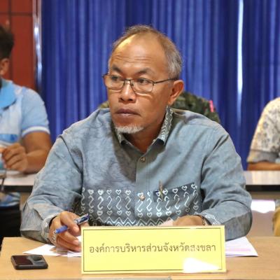 นายอับดลรอหมาน กาเหย็ม รองนายกองค์การบริหารส่่วนจังหวัดสงขลา เข้าร่วมในการประชุม "เตรียมความพร้อมรับสถานการณ์อุทกภัย วาตภัย และดินถล่ม จังหวัดสงขลา ประจำปี 2566"