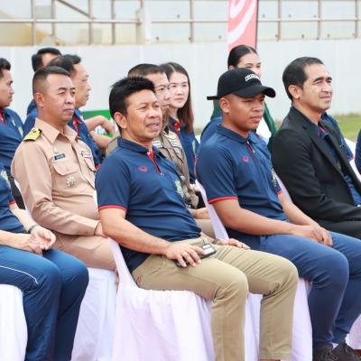 พร้อมด้วย นายชัยวุฒิ บัวทอง นายอำเภอเมืองสงขลา นายดำรงรักษ อภิบาลสวัสดิ์ รองประธานเจ้าหน้าที่ฝ่ายปฏิบัติการอาวุโส บมจ.หาดทิพย์ นายถาวร บุญศรี ผู้ช่วยเลขาธิการ ศอ.บต นายประทีป แก้วประสิทธิ์ ผู้จัดการฝ่ายกิจกรรมพิเศษ บมจ.หาดทิพย์ หัวหน้าส่วนราชการ คณะกรรมการจัดการแข่งขัน และคณะครู นักเรียนจากโรงเรียนในสังกัด อบจ.สงขลา ร่วมเป็นเกียรติในพิธีเปิด