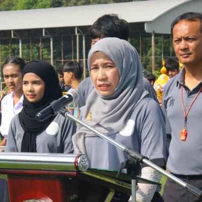 โดยมี นางสาวมัสกะห์ เจะแม็ง ผู้อำนวยการสถานศึกษา โรงเรียน อบจ.สงขลาพิทยานุสรณ์ // กล่าวต้อนรับ