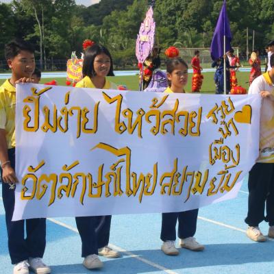 นายยสินทร สมสุข นักเรียนระดับชั้น ม.6/1 โรงเรียน อบจ.สงขลาพิทยานุสรณ์ ในนามตัวแทนการจัดการแข่งขันกีฬาสีภายใน "สิงห์สองเลเกมส์" //