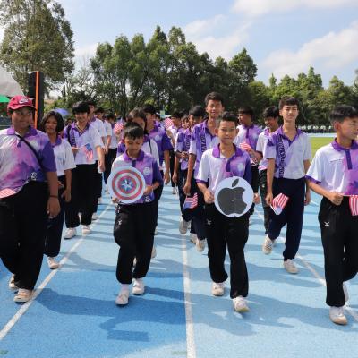 การแข่งขันกีฬาสีประกอบด้วย คณะสี 4 สี ได้แก่ สีแดง สีม่วง สีเขียว และสีเหลือง โดยจัดให้มี การแข่งขัน 6 ชนิดกีฬา ได้แก่ ฟุตบอล วอลเลย์บอล เซปักตะกร้อ แชร์บอล กีฬาพื้นบ้าน และกรีฑานอกจากนั้นยังจัดให้มีการประกวดขบวนพาเหรด กองเชียร์ และผู้นำเชียร์