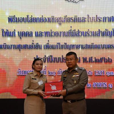 นายกไพเจน รับมอบโล่ยกย่องเชิดชูเกียรติ และใบประกาศเกียรติคุณ บุคคลและหน่วยงาน ที่มีผลการปฏิบัติงานดีเด่น “โครงการดำเนินงานชุมชนยั่งยืน เพื่อแก้ปัญหายาเสพติดแบบครบวงจรตามยุทธศาสตร์ชาติ ประจำปีงบประมาณ พ.ศ. 2566”