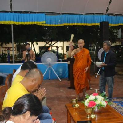 โดยท่านพระครูปลัดภูวนัย สุเมธโส เจ้าอาวาสวัดเกาะเสือ ได้แสดงเทศนาธรรมแก่ผู้มาร่วมโครงการฯ และประวัติความเป็นมาของประเพณีวันสารทเดือนสิบ และคณะสงฆ์ ประกอบพิธีกรรมทางศาสนาพุทธ