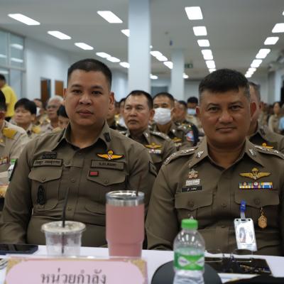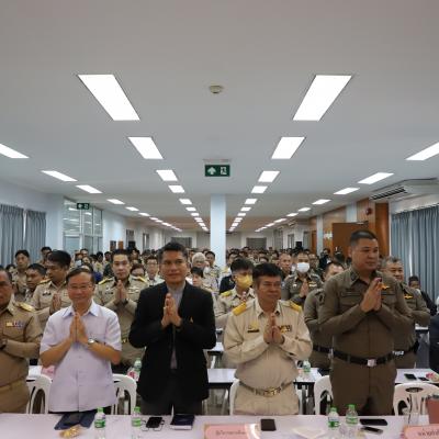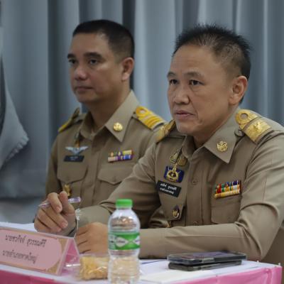 นายชวกิจจ์ สุวรรณคีรี นายอำเภอหาดใหญ่ หัวหน้าส่วนราชการ หน่วยงานภาครัฐ และเอกชนในอำเภอหาดใหญ่ ร่วมประชุม