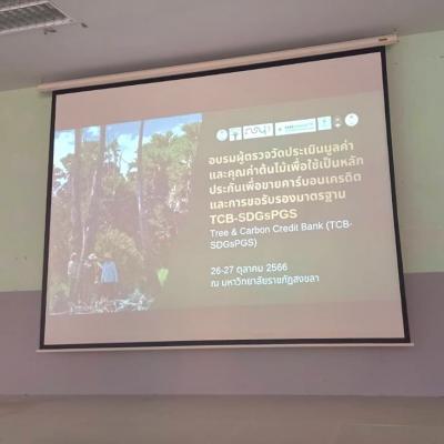 นายเชิดเกียรติ เมธีลักษณ์ ที่ปรึกษานายกองค์การบริหารส่วนจังหวัดสงขลา เป็นประธานเปิดการอบรมผู้ตรวจวัดประเมินมูลค่าและคุณค่าต้นไม้ เพื่อใช้เป็นหลักประกันและขายคาร์บอนเครดิต