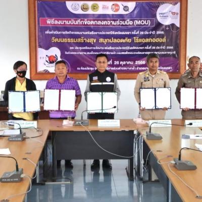โดยมี พ.ต.ท.ศักดิ์ชัย สมานวิวัฒน์ รองผู้กำกับการสถานีตำรวจภูธรบางกล่ำ, นายปฏิวัติ ทองเพชรจันทร์ นายอำเภอบางกล่ำ, นายสมโภช นันทวงศ์ รองนายกองค์การบริหารส่วนตำบลบางกล่ำ, และภก.สงกรานต์ ภาคโชคดี ประธานเครือข่ายงดเหล้า ร่วมลงนามฯ