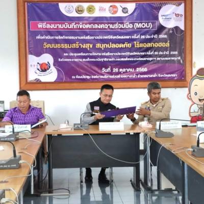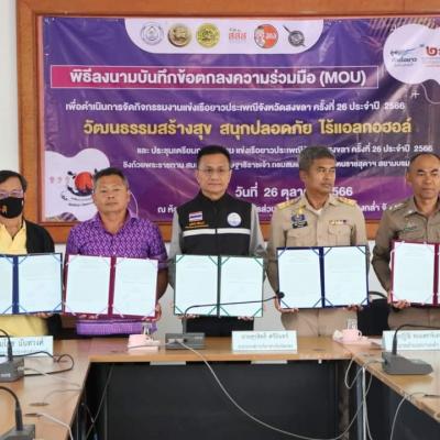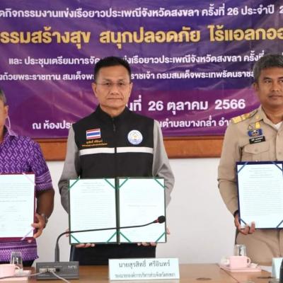 ทั้งนี้ หน่วยงานที่เกี่ยวข้อง ได้ร่วมลงนามบันทึกข้อตกลงความร่วมมือ (MOU) ว่าจะร่วมมือ ร่วมแรง ร่วมใจกัน ในการขับเคลื่อนการทำงานทั้งภาครัฐ ภาคเอกชน และประชาสังคมร่วมกัน จัดงานการแข่งขันกีฬาเรือยาวประเพณีจังหวัดสงขลา ครั้งที่ 26 ประจำปี 2566 โดยปลอด เครื่องดื่มแอลกอฮอล์ทุกชนิด เพื่อพัฒนาให้จังหวัดสงขลา เป็นจังหวัดต้นแบบในการจัดแข่งขัน กีฬาเรือยาวประเพณีปลอดเครื่องดื่มแอลกอฮอลในโอกาสต่อไป