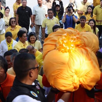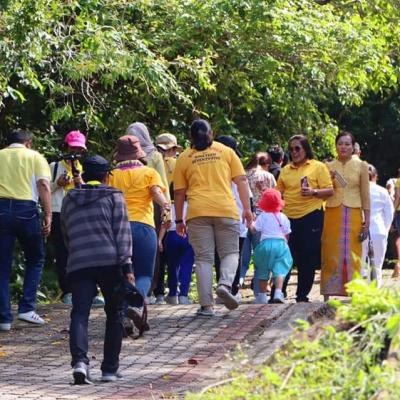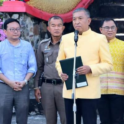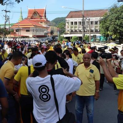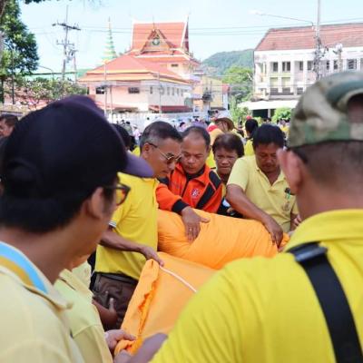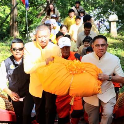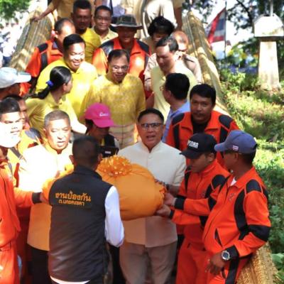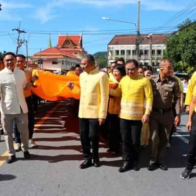 นายก อบจ.สงขลา และชาวสงขลา ร่วมทำพิธีแห่ผ้าห่มองค์พระเจดีย์หลวงบนยอดเขาตังกวน ในช่วงเทศกาลออกพรรษา