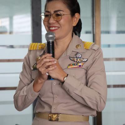 กล่าวต้อนรับพร้อมให้โอวาท นางมยุรี พานชัย ตำแหน่งผู้อำนวยการกองการศึกษา สังกัดเทศบาลเมืองปากพนัง อำเภอปากพนัง จังหวัดนครศรีธรรมราช