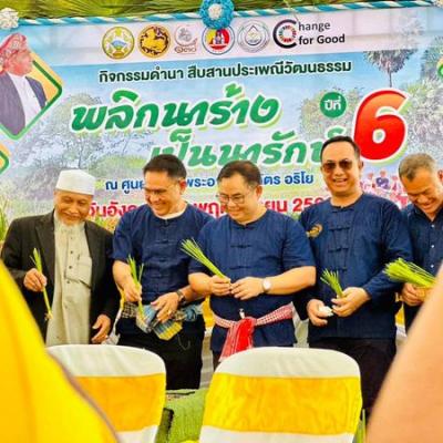 ร่วมกิจกรรมการดำนา สืบสานประเพณีวัฒนธรรม "พลิกนาร้าง เป็นนารักษ์ ปีที่ 6 โดยมีวัตถุประสงค์ เพื่อสร้างความเข้มแข็งในชุมชน ภายใต้สังคมพหุวัฒนธรรม ส่งเสริมให้เกษตรกรในพื้นที่ทั้งชาวไทยพุทธและชาวไทยมุสลิม ได้ร่วมกันฟื้นฟูนาข้าวที่ถูกทิ้งร้างให้กลับมาทำนาข้าวได้อีกครั้ง ขับเคลื่อนโครงการสร้างความปรองดองสมานฉันท์ โดยใช้หลักทางศาสนา "ขยายผลสู่ หมู่บ้านศีลธรรม" และ โครงการหมู่บ้านยั่งยืน (sustainable village) "ส่งเสริมความมั่นคงทางอาหารและจัดการสิ่งแวดล้อมตามแนวทางเศรษฐกิจพอเพียง"