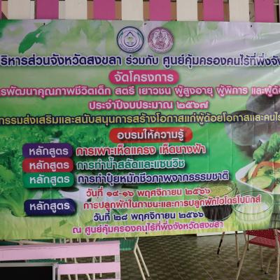 การอบรมในครั้งนี้ เป็นการอบรมให้ความรู้ทั้งหมด 4 หลักสูตร ได้แก่ หลักสูตรการเพาะเห็ดแครง เห็ดนางฟ้า/ หลักสูตรการทำน้ำสลัดและแซนวิส/ หลักสูตรการทำปุ๋ยหมักชีวภาพจากธรรมชาติ ซึ่งจัดอบรมในวันที่ 14 - 16 พฤศจิกายน 2566 และหลักสูตรการปลูกผักในภาชนะและการปลูกผักไฮโดรโปนิกส์ อบรมในวันที่ 28 พฤศจิกายน 2566 โดยมีกลุ่มเป้าหมายเป็นผู้ด้อยโอกาสและคนไร้ที่พึ่ง ในจังหวัดสงขลา/ กลุ่มเครือข่าย อพม.จังหวัดสงขลา/ กลุ่มเครือข่ายอาสาสมัครชุมชน และเจ้าหน้าที่ที่เกี่ยวข้อง หลักสูตรละ 60 คน โดยองค์การบริหารส่วนจังหวัดสงขลา ได้ให้การสนับสนุนงบประมาณในการจัดอบรมครั้งนี้ เป็นเงินจำนวน 200,000 บาท