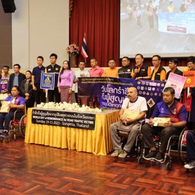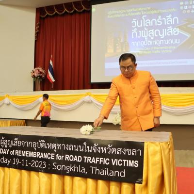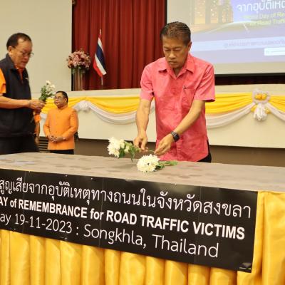 พล.ต.ท.สาคร ทองมุณี นายกเทศมนตรีเทศบาลนครหาดใหญ่ พร้อมด้วย นายสัมฤทธิ์ บุญรัตน์ รองนายกเทศมนตรีนครหาดใหญ่ นายธีระนันท์ วงศ์หล่อ อดีตผู้ว่าการภาค คณะกรรมการสโมสรโรตารีจังหวัดสงขลา สำนักงานป้องกันและบรรเทาสาธารณภัยจังหวัดสงขลา หัวหน้าส่วนราชการ ผู้บริหารฯสโมสรโรตารี่ในพื้นที่จังหวัดสงขลา ภาคีเครือข่าย ผู้สูญเสียจากอุบัติเหตุทางถนน และนักเรียน นักศึกษา ประชาชนทั่วไป ร่วม กิจกรรมรณรงค์เนื่องใน “วันโลกรำลึกถึงผู้สูญเสียจากอุบัติเหตุทางถนน (World Day of Remembrance for Road Traffic Victims) ” ประจำปี 2566 โดยมี นายเศวต เพชรนุ้ย ปลัดจังหวัดสงขลา ประธานในพิธี