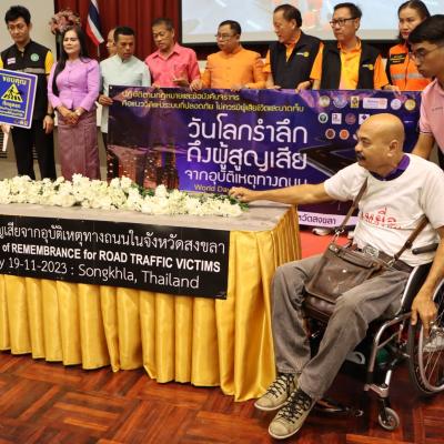 และขอให้ทุกคนมีส่วนร่วมในการป้องกันและลดอุบัติเหตุทางถนน อันจะนำไปสู่การลดความสูญเสียได้อย่างแท้จริง ณ หอประชุมเทศบาลนครหาดใหญ่