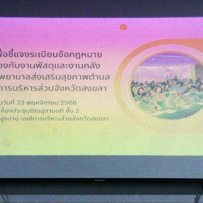 การประชุมชี้แจงระเบียบข้อกฎหมายที่เกี่ยวข้องกับงานพัสดุและงานคลัง สำหรับโรงพยาบาลส่งเสริมสุขภาพตำบล สังกัดองค์การบริหารส่วนจังหวัดสงขลา