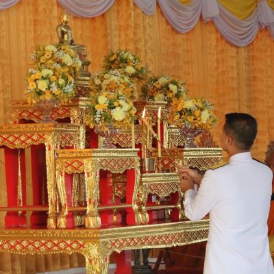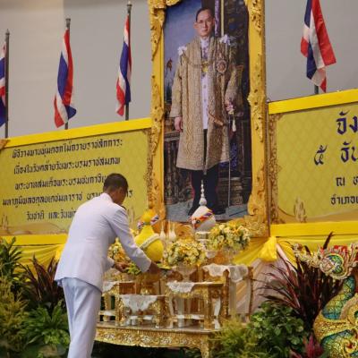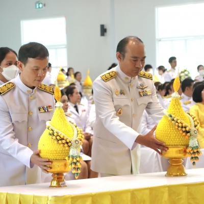จากนั้น เวลา 08.30 น. ร่วมวางพานพุ่มถวายราชสักการะ เบื้องหน้าพระบรมฉายาลักษณ์พระบาทสมเด็จพระบรมชนกาธิเบศร มหาภูมิพลอดุลยเดชมหาราช บรมนาถบพิตร ณ หอประชุมจังหวัดสงขลา เพื่อร่วมกันแสดงออกถึงความจงรักภักดี และน้อมรำลึกในพระมหากรุณาธิคุณอันหาที่สุดมิได้ที่พระองค์ทรงปฏิบัติพระราชกรณียกิจนานัปการ