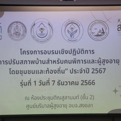 วันที่ 7 ธันวาคม 2566 เวลา 09.00 น. นางสาวปรินดา ปาลาเร่ รองนายกองค์การบริหารส่วนจังหวัดสงขลา เป็นประธานเปิดโครงการอบรมเชิงปฏิบัติการ “การปรับสภาพบ้านสำหรับคนพิการและผู้สูงอายุโดยชุมชนและท้องถิ่น” ประจำปี 2567