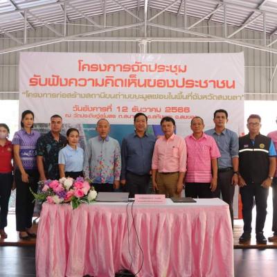 อบจ.สงขลา เปิดเวทีรับฟังความคิดเห็นโครงการก่อสร้างสถานีขนถ่ายขยะมูลฝอยในพื้นที่จังหวัดสงขลา (พื้นที่ตำบลสนามชัย) เพื่อบรรเทาความเดือดร้อนของประชาชน สู่การพัฒนาคุณภาพชีวิตขั้นพื้นฐานที่ดีขึ้น