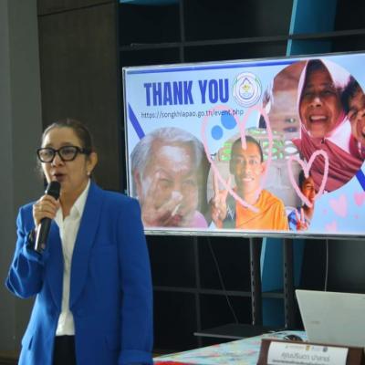 รองปรินดา บรรยายพิเศษ การส่งเสริมคุณภาพชีวิตผู้สูงอายุ ให้ใช้ชีวิตอย่างมีความสุข อายุยืนยาว ในโครงการอบรมการให้การดูแลผู้สูงอายุ เพื่อรับมือ เมื่อสังคมไทยเข้าสู่สังคมผู้สูงอายุ ปัจจุบันสงขลา มีผู้สูงอายุมากกว่า 2 แสนคนแล้ว