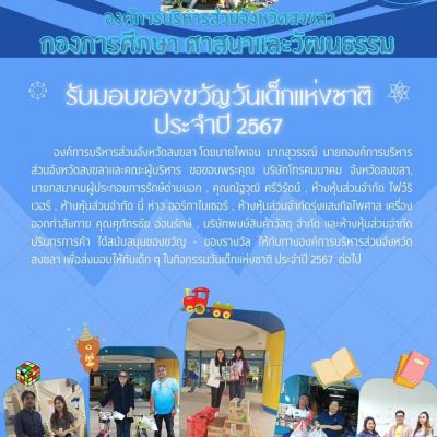 ขอขอบพระคุณผู้สนับสนุนของขวัญ - ของรางวัล ให้กับทางอบจ.สงขลา เพื่อส่งมอบให้กับเด็ก ๆ ในกิจกรรมวันเด็กแห่งชาติ ประจำปี 2567