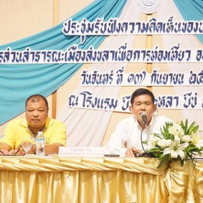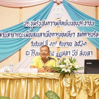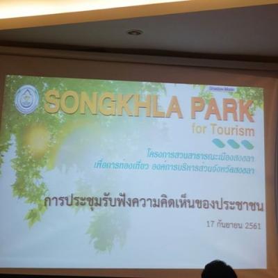 17 กันยายน 2561 เวลา 13.00 น.นายสมหมาย ขวัญทองยิ้ม รองนายกองค์การบริหารส่วนจังหวัดสงขลา เป็นประธานเปิดการประชุมรับฟังความคิดเห็นของประชาชน โครงการสวนสาธารณะเมืองสงขลาเพื่อการท่องเที่ยวองค์การบริหารส่วนจังหวัดสงขลา ณ โรงแรม บีพี สมิหลา บีช สงขลา อำเภอเมือง จังหวัดสงขลา