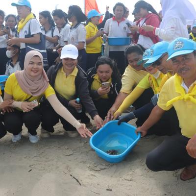 ทั้งนี้ ผู้เข้าร่วมกิจกรรม ได้ร่วมกันปล่อยเต่าทะเลคืนสู่ธรรมชาติ เก็บกวาดขยะมูลฝอยชายหาดชลาทัศน์ เพื่อปรับปรุงภูมิทัศน์ให้มีความสะอาดสวยงาม เราทำความดีด้วยหัวใจ