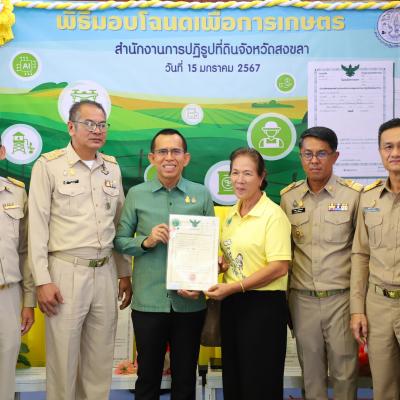 อบจ.สงขลา ส่งเสริมการเกษตร ร่วม“Kick Off” มอบโฉนดเพื่อการเกษตร เดินหน้านโยบายรัฐบาล เปลี่ยน ส.ป.ก. 4-01 เป็นโฉนดเพื่อการเกษตร