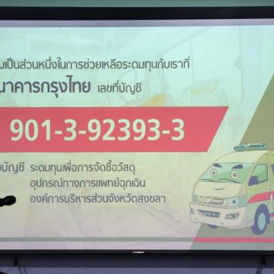 ชื่อบัญชี : ระดมทุนเพื่อการจัดซื้อวัสดุอุปกรณ์ทางการแพทย์ฉุกเฉิน องค์การบริหารส่วนจังหวัดสงขลา