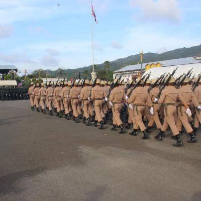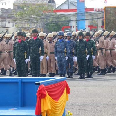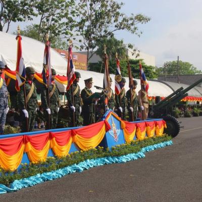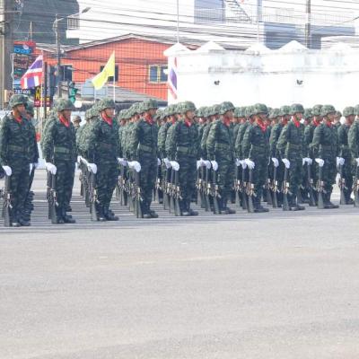 มทบ.42 จัดพิธีสวนสนามถวายสัตย์ปฏิญาณตนต่อธงชัยเฉลิมพล เนื่องในวันกองทัพไทย เพื่อรำลึกวีรกรรมของสมเด็จพระนเรศวรมหาราช