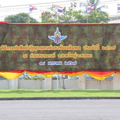 วันที่ 18 มกราคม 2567 เวลา 15.00 น. นายไพเจน มากสุวรรณ์ นายกองค์การบริหารส่วนจังหวัดสงขลา มอบหมายให้ นายสุรสิทธิ์ ศรีอินทร์ รองนายกองค์การบริหารส่วนจังหวัดสงขลา ร่วมเป็นเกียรติในพิธีกระทำสัตย์ปฏิญาณตนต่อธงชัยเฉลิมพล ประจำปี 2567 ณ ลานอเนกประสงค์หน้าศูนย์บรรเทาสาธารณภัย มณฑลทหารบกที่ 42 ค่ายเสนาณรงค์ อ.หาดใหญ่ จ.สงขลา เนื่องในโอกาสวันกองทัพไทย