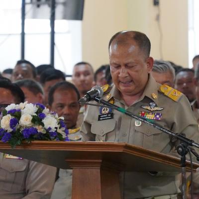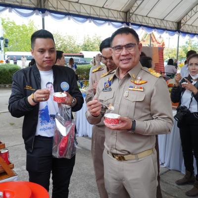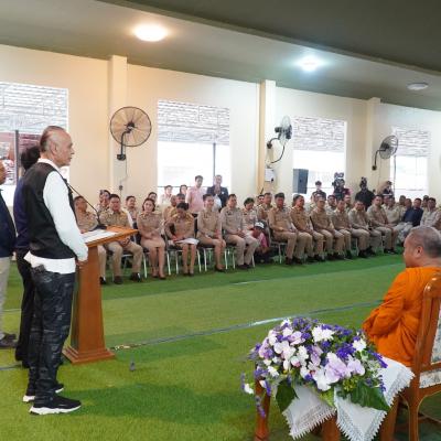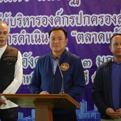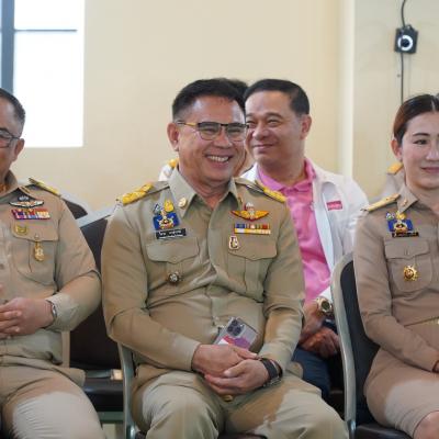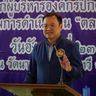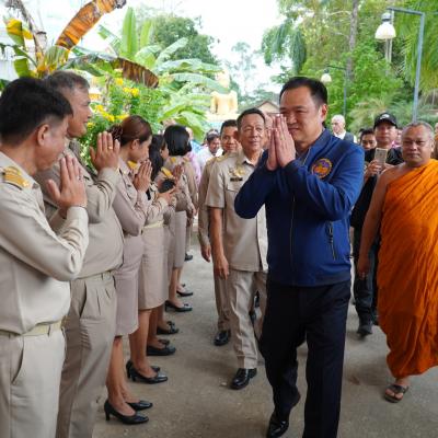 นายกไพเจน ให้การต้อนรับ นายอนุทิน ชาญวีรกุล รองนายกรัฐมนตรี และรัฐมนตรีว่าการกระทรวงมหาดไทยและคณะ ในโอกาสเดินทางมามอบนโยบายแก่อปท. และเยี่ยมชมตลาดแก้หนี้ ณ ศาลาอเนกประสงค์วัดนาทวี