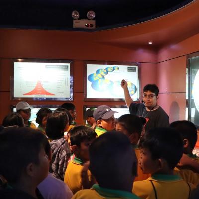 และในภาคบ่าย ศึกษาดูงาน ณ พิพิธภัณฑ์ธรรมชาติวิทยา 50 พรรษา สยามบรมราชกุมารี พร้อมรับฟังการบรรยายให้ความรู้ ตามฐานต่าง ๆ ฐานที่ 1 โลกและมาตราธรณีกาล ชมการจัดแสดงเรื่องราวเกี่ยวกับระบบสุริยะจักรวาล การกำเนิดโลก กำเนิดประเทศไทย ฯลฯ , ฐานที่ 2 ความหลากหลายของสิ่งมีชีวิต ชมการจัดแสดงเรื่องราวเกี่ยวกับความหลากหลายของสิ่งมีชีวิต ชมความหลากหลายของสิ่งมีชีวิตซึ่งได้จัดเป็นหมวดหมู่ตามลำดับอนุกรมวิธาน และฐานที่ 3 ระบบนิเวศ ชมการจัดแสดงระบบนิเวศที่หลากหลาย แสดงความสัมพันธ์ระหว่างสิ่งมีชีวิตและสิ่งแวดล้อม โดยมีเจ้าหน้าที่พิพิธภัณฑ์ธรรมชาติวิทยา 50 พรรษา สยามบรมราชกุมารี บรรยายให้ความรู้ตามฐานต่าง ๆ โดยบรรยากาศตลอดกิจกรรม เป็นไปอย่างสนุกสนาน