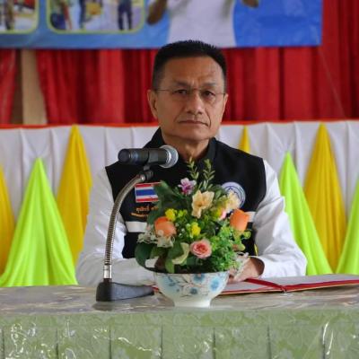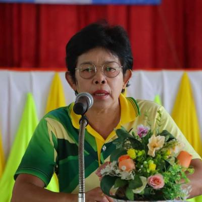 นางสาวพรทิพย์ ศรีจำเริญ ผู้อำนวยการโรงเรียนสามบ่อวิทยา // กล่าวต้อนรับ