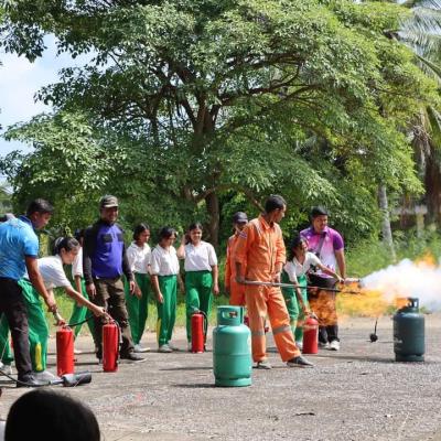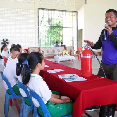 โครงการฝึกอบรมฯ มีการบรรยายให้ความรู้ทางวิชาการเกี่ยวกับแผนการป้องกันอัคคีภัย การฝึกปฏิบัติการใช้อุปกรณ์ในการเผชิญเหตุ การระงับเหตุ วิธีการอพยพหนีไฟ และการซ้อมแผนอพยพหนีไฟ (จําลองสถานการณ์จริง) ทั้งนี้ เพื่อเป็นการเตรียมความพร้อมในการป้องกันและบรรเทาความเสียหายหรือผลกระทบที่อาจเกิดขึ้นให้แก่ครู นักเรียน และบุคลากรในสถานศึกษา เมื่อเกิดอัคคีภัย โดยมีนายเกรียงไกร ไชยมิตร นักป้องกันและบรรเทาสาธารณภัยชำนาญการ และบุคลากร งานป้องกันและบรรเทาสาธารณภัย อบจ.สงขลา (ซึ่งได้รับการอนุญาตให้เป็นหน่วยงานฝึกอบรมการดับเพลิงขั้นต้นและฝึกซ้อมอพยพหนีไฟ ตามกฏกระทรวง พ.ศ.2555 จากกรมสวัสดิการคุ้มครองแรงงาน) เป็นวิทยากรบรรยายให้ความรู้ พร้อมนำฝึกปฏิบัติการใช้อุปกรณ์ต่างๆ