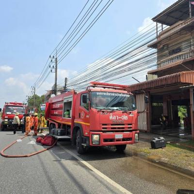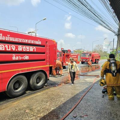 อบจ.สงขลา สนับสนุนรถดับเพลิงพร้อมเจ้าหน้าที่ดับเพลิง เพื่อระงับเหตุเพลิงไหม้ บริเวณพื้นที่ เทศบาลเมืองคลองแห