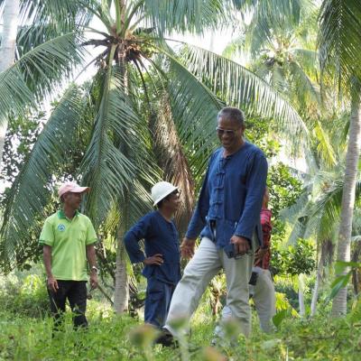 การปลูกก็ไม่ต้องไปขุดหลุม แค่เอามะพร้าวไปวาง แล้วเอาเศษหญ้า สุมๆ ปิดเอาไว้ มันก็จะงอกขึ้นมา การดูแลก็ใส่ขี้วัว ไม่ต้องทำอะไรมาก