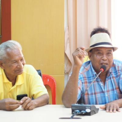 เวทีในวันนี้ประกอบด้วย ผู้เฒ่าผู้แก่ ที่มีอายุ 70-80+ ปี 4 ท่าน ทำให้เวทีมีความอบอุ่นมาก มีคนรุ่น 50-70 มีผู้ใหญ่บ้าน นายก อบต ปราชญ์ชุมชน เกษตรกรผู้นำจากสทิงพระ ผู้ประกอบการรับซื้อ ส่วนราชการจาก เกษตรจังหวัดสงขลา สวพ8 มหาวิทยาลัยราชภัฏสงขลา และ จากองค์การบริหารส่วนจังหวัด