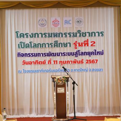 วันที่ 11กุมภาพันธ์ 2567 นายไพเจน มากสุวรรณ์ นายกองค์การบริหารส่วนจังหวัดสงขลา เป็นประธานพิธีเปิดโครงการมหกรรมวิชาการเปิดโลกการศึกษา ประจำปีงบประมาณ พ.ศ. 2567 รุ่นที่ 2 (กิจกรรมการพัฒนาระบบสู่โลกยุคใหม่)