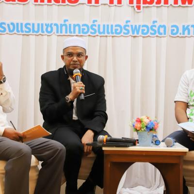 พร้อมด้วย นายอับดลรอหมาน กาเหย็ม รองนายกองค์การบริหารส่วนจังหวัดสงขลา ประธานกรรมการอิสลามประจำจังหวัดสงขลา คณะกรรมการอิสลามประจำจังหวัดสงขลา คณะอิหม่าม ผู้นำศาสนาและผู้เข้าร่วมอบรม