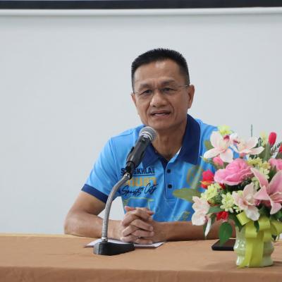 ศรีอินทร์ รองนายกองค์การบริหารส่วนจังหวัดสงขลา เปิดประธานในการประชุมเตรียมความพร้อมก่อนการเดินทางเข้าร่วมเเข่งขันกีฬา