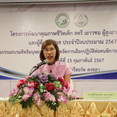 โครงการพัฒนาคุณภาพชีวิตเด็กสตรีเยาวชนผู้สูงอายุผู้พิการและผู้ด้อยโอกาสประจำปีงบประมาณ 2567( กิจกรรมอบรมสิทธิมนุษยชนและการขจัดการเลือกปฏิบัติต่อคนพิการและผู้ดูแลคนพิการ)