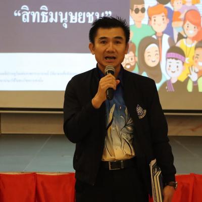 พันเอกสุพจน์ โพยนอก //หัวหน้ากลุ่มงานส่งเสริมและเฝ้าระวังสถานการณ์สิทธิมนุษยชน จากสำนักงานคณะกรรมการสิทธิมนุษยชนแห่งชาติพื้นที่ภาคใต้// ให้ความรู้เรื่อง "หลักสิทธิมนุษยชนสากล สิทธิคนพิการและกลไกการคุ้มครองสิทธิมนุษยชนของคณะกรรมการสิทธิมนุษยชนแห่งชาติ"