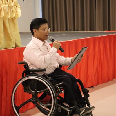 นายณัฐวัฒร รัตนบุตย์ //นิติกรจากสำนักงานพัฒนาสังคมและความมั่นคงของมนุษย์จังหวัดสงขลา //ให้ความรู้เรื่อง "กฎหมายเบื้องต้นเกี่ยวกับการใช้ชีวิตประจำวันและสิทธิของคนพิการและการเข้าถึงสิทธิของคนพิการ"